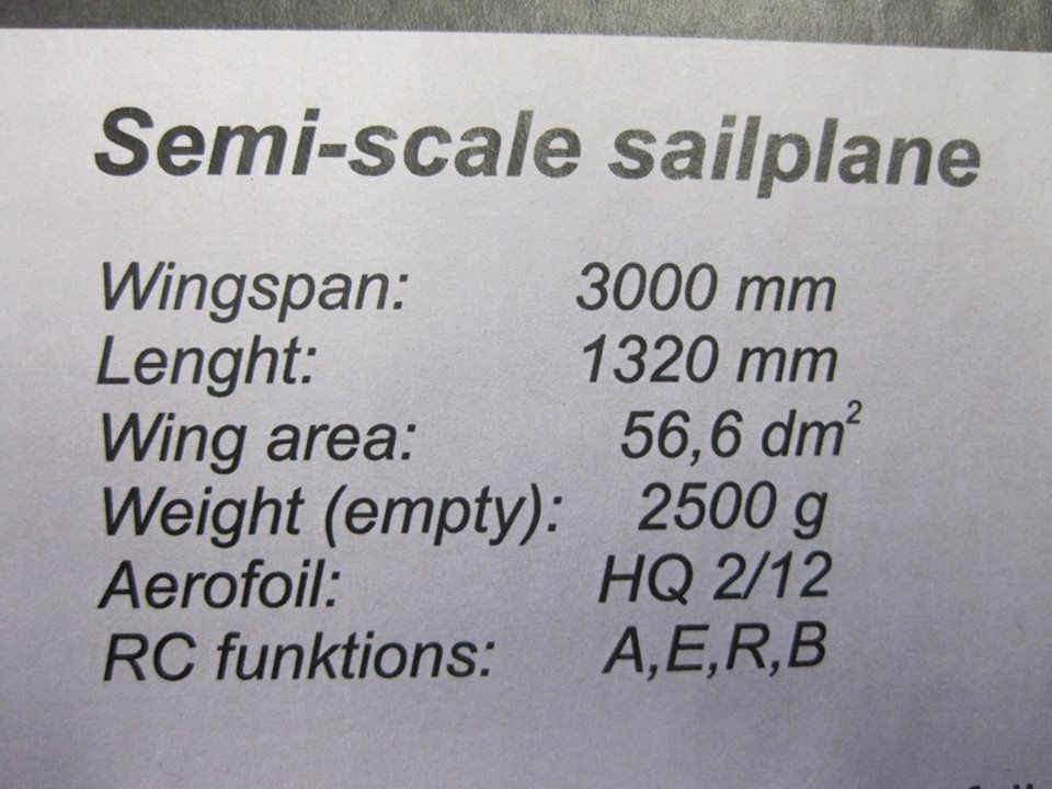 Avec son envergure de 15 mètres, ce planeur fait donc partie de la classe des 15 mètres. Il à une surface ailaire de 14m2 et un poid à vide de 320 kilos. Sa structure est entièrement métallique.
