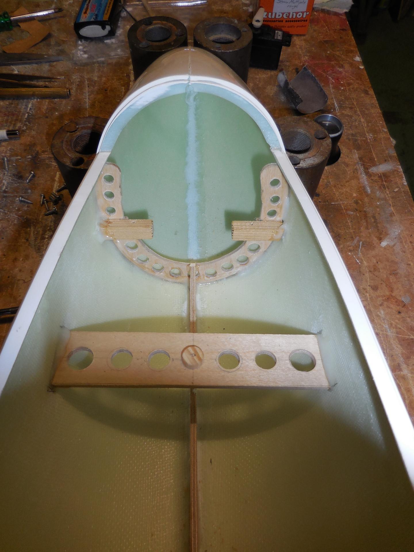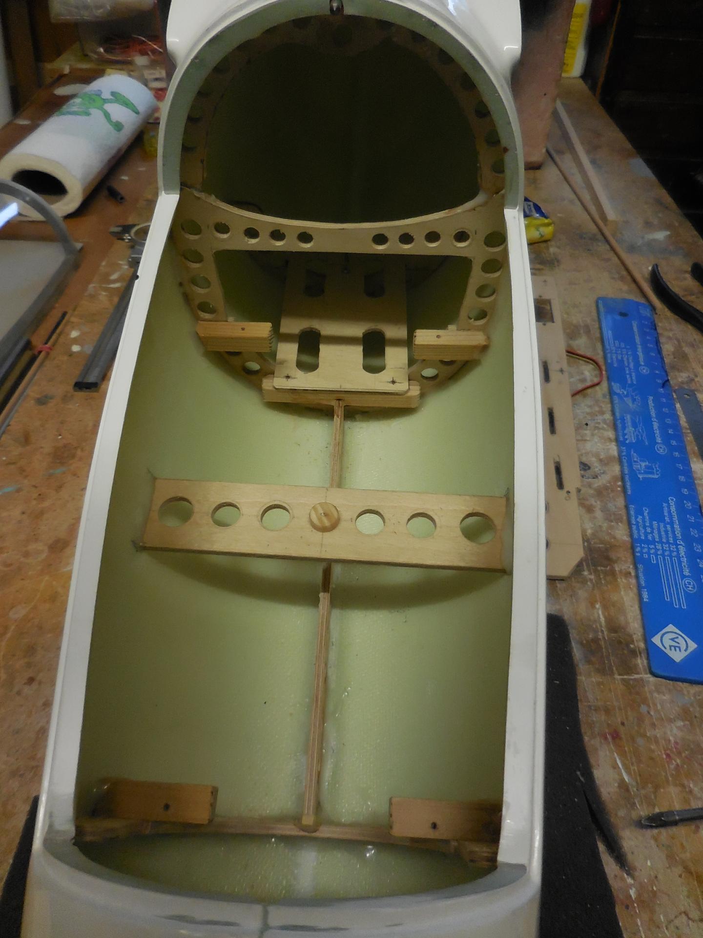 Je réalise et colle donc les quelques renforts qui me semblent indispensables pour assurer la pérénité du model. Je renonce d'emblée à réaliser le train fixe que je pourais placer sur ce model, de manière à gagner du poids ce qui, dans cette version électrique,est primordial pour assurer un bon raport poids / puissance.