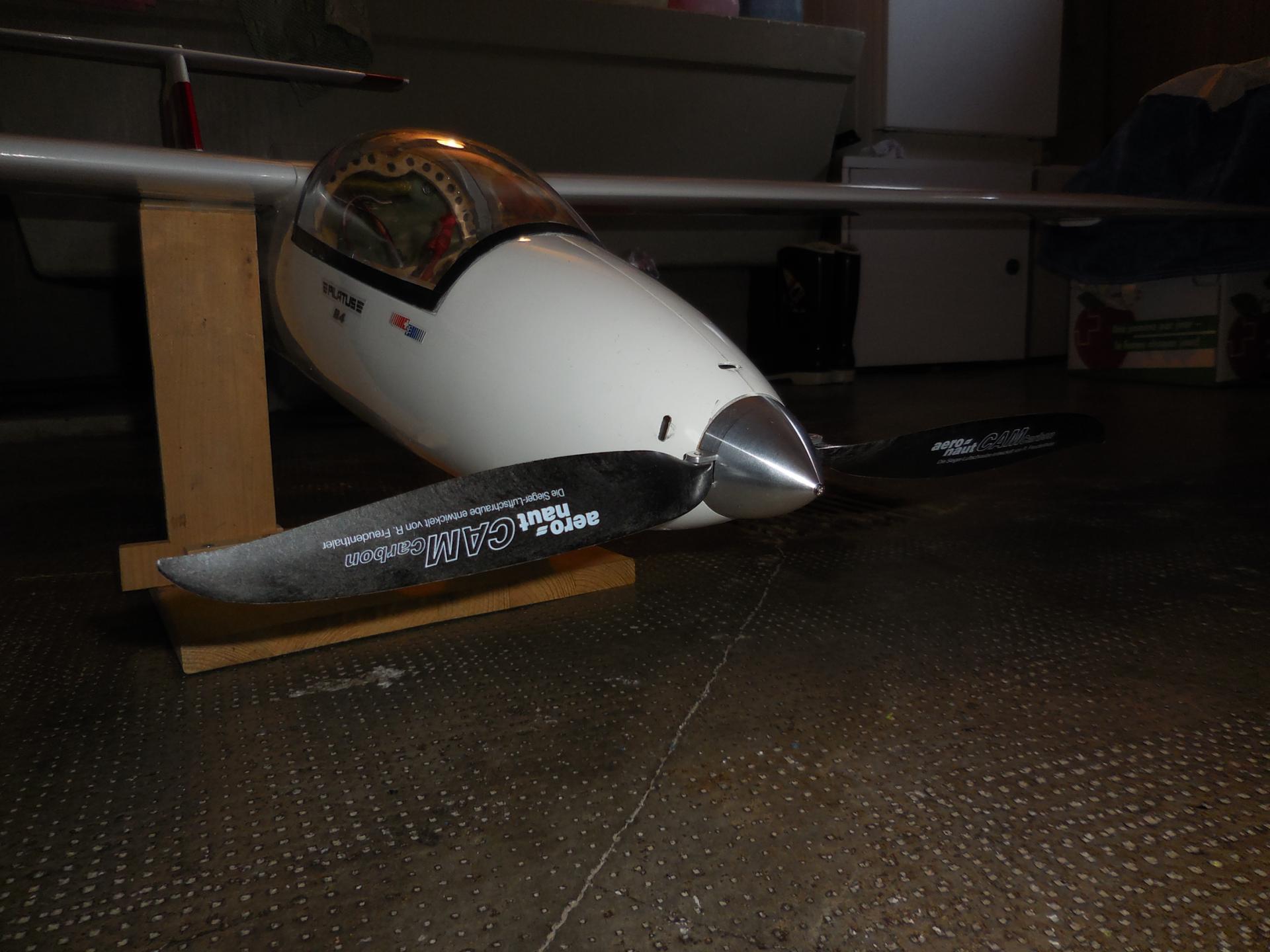 Avant de débuter celle-ci, je décide de transformer cette version en une verion motorisée avec un moteur Brushless dans le nez du planeur et une hélice repliable en prise directe sur ce moteur. Cette modification doit me permette de pouvoir voler dans toutes les conditions, à savoir en plaine lorsqu'il n'y à pas de remorqueur pour la mise en altitude, et à la pente lorsque les conditions sont limites et que le palneur à des risques de " partir au trou ".